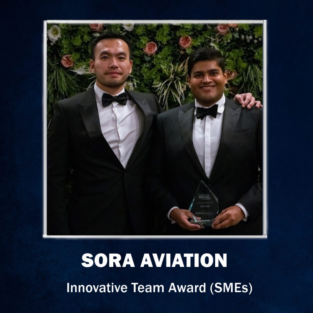 The Innovative Team Award was presented to SME Sora Aviation for its pioneering of a high-capacity, 30-seat electric vertical take-off and landing (eVTOL) aircraft. The project aims to revolutionise urban air mobility by providing a sustainable and scalable solution for transportation in urban centres and remote areas.