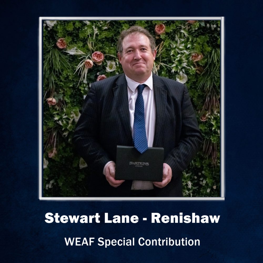 Stewart Lane, Head of Business Development at Renishaw, was presented by WEAF a special award to recognise his continual support to the organisation.